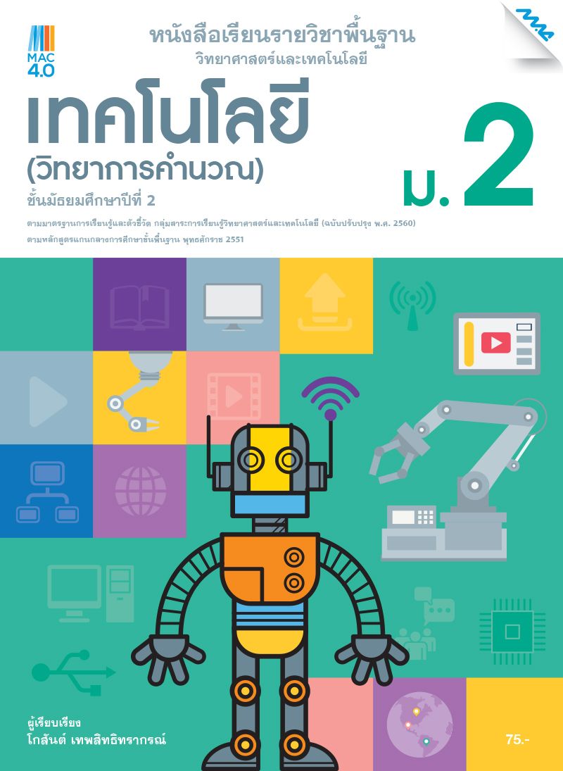 หนังสือเรียนรายวิชาพื้นฐานวิทยาศาสตร์และเทคโนโลยี เทคโนโลยี (วิทยาการคำนวณ) ชั้นมัธยมศึกษาปีที่ 2 มีเนื้อหาตรงตามหลักสูตรแกนกลางการศึกษาขั้นพื้นฐาน พุทธศักราช 2551 (ฉบับปรับปรุง พ.ศ. 2560) ของกระทรวงศึกษาธิการ ภายในเล่มมีเนื้อหาเกี่ยวกับการออกแบบอัลกอริทึมที่ใช้แนวคิดเชิงคำนวณในการแก้ปัญหา ออกแบบและเขียนโปรแกรมที่ใช้ตรรกะและฟังก์ชันในการแก้ปัญหา ออกแบบและเขียนโปรแกรมด้วยภาษาไพทอน องค์ประกอบและหลักการทำงานของระบบคอมพิวเตอร์และเทคโนโลยีการสื่อสาร และประยุกต์ใช้งานระบบคอมพิวเตอร์และเทคโนโลยีการสื่อสารและการแก้ปัญหาเบื้องต้น ซึ่งในหนังสือเรียนจะประกอบด้วยแนวคิดสำคัญ เนื้อหา กิจกรรมฝึกทักษะ กิจกรรมตรวจสอบการเรียนรู้ กิจกรรมเพื่อส่งเสริมความคิดสร้างสรรค์ สรุป และคำถามท้ายหน่วยการเรียนรู้